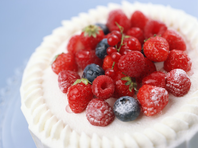 ラズベリー、ブルーベリー、ストロベリー、3種のベリーを贅沢に使ったヨーグルト風味のショートケーキです。